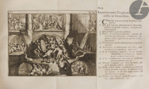 Cette édition est la seconde et succède à celle de 1683. Augmentée et corrigée, elle est illustrée de 12 planches dépliantes, dont 11 numérotées de 1 à 11, accompagnées d’une légende imprimée, et 1 sans numéro qui représente les ruines du temple d’Hercule à Tibur. Ces planches, parfaitement gravées, ne sont pas signées mais sont habituellement attribuées au peintre et graveur hollandais Romain de Hooghe (1645-1708). Il s’agit des mêmes que l’on trouve dans l’édition de 1683, à ceci près que cette seconde édition ne comporte pas de frontispice.