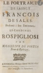 FORTIA (Étienne de). — Le Portraict de Saint Francois de Sales. — Presentè à son Eminence le cardinal Rospigliosi. — Rome : Philippe Marie Mancini, 1669. — Petit in-8, 151 x 198 : 96 pp.