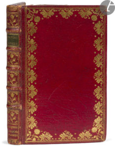 Maroquin rouge, roulette dorée et fleur dorée aux angles en encadrement sur les plats, dos à nerfs orné, roulette dorée intérieure, tranches dorées (reliure de la fin du XVIIIe ou du début du XIXe siècle).