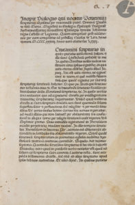 Cette édition est la première et l’une des rares impressions de Johann Schall, qui n’exerça à Mantoue que de 1475 à 1479. Le BMC ne répertorie que 4 ouvrages sortis de ses presses.