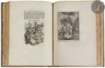 Réimpression de l’édition de 1718, reprenant les mêmes illustrations composées d’un frontispice gravé par Audran d’après Coypel, et de 28 planches gravées par le même d’après les peintures faites par le régent Philippe d’Orléans. On y trouve également la figure des « petits pieds » attribuée au Comte de Caylus et gravée pour la première fois en 1728, ainsi qu’une vignette sur le titre, 4 beaux bandeaux non signés et 4 jolis culs-de-lampe de Cochin en premier tirage.