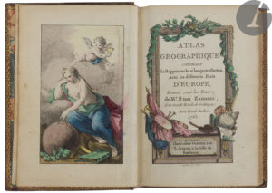 RIZZI-ZANNONI (Giovanni Antonio). — Atlas géographique contenant la Mappemonde et les quatre Parties, Avec les différents États d’Europe. — Paris : Lattré, 1762. — In-16, 124 x 84 : frontispice, titre, 54 cartes.
