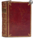 Maroquin rouge, triple filet doré en encadrement et fleuron doré aux angles sur les plats, dos lisse orné, roulette dorée intérieure, tranches dorées (reliure de l’époque).