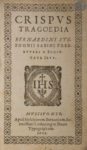 STEFONIO (Bernardino). — Crispus tragoedia. — Mussiponti [Pont-à-Mousson] : Melchior Bernard, 1602. — In-24, 123 x 75 : 185 pp., (1 f.).