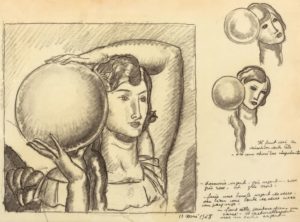 DUPAS JEAN (1882-1964) Femme à la boule. Étude au crayon et encre datée 13 mai 1928. 24 x 34 …