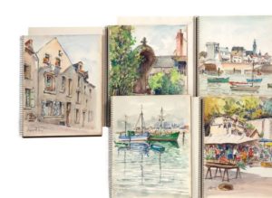 Suite de 67 aquarelles sur papier signées, certaines situées et datées.