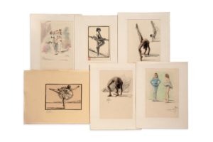 On joint 5 aquarelles ou pochoirs et 80 estampes signées: danseuses et paysages.