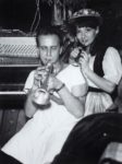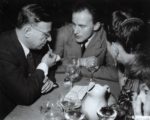 Charlie CHAPLIN et Pierre PRÉVERT à la Rose Rouge, 1949. Tirage de 1965 avec 3 tampons au dos, sur papier satiné, réalisé par l'auteur.