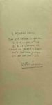 Des presses du Pei-T'ang. L'évêque de Pékin, Louis-Gabriel Delaplace, fit l'acquisition d'une presse à bras en 1862 pour la publication des documents utiles à son ministère apostolique, et fit venir en 1878 deux frères lazaristes pour s'occuper des impressions. L'un deux, frère Auguste Maes, s'était formé dans ce but à l'imprimerie parisienne Chamerol, et prit la direction de l'imprimerie. Située dans le quartier de la cathédrale catholique à Pékin, dit Pei-T'ang (Beitang), elle prit son essor grâce à ce religieux énergique qui, durant près de cinquante ans, la dota de nouvelles presses et la développa jusqu'à employer une cinquantaine d'ouvriers. Envoi autographe signé : « À Mavone chérie, qui vit éclore le germe de ceci, – qui est mêlée à ceci comme la chair au baiser ; – sans autre dédicace puisque Ceci est un peu d'Elle... » Sur Yvonne Segalen, épouse aimée, interlocutrice indispensable et collaboratrice zélée, cf. supra le n° 60. « Juxtaposer la bibliophilie chinoise à la nôtre » (Victor Segalen à son ami Henry Manceron, 25 mars 1912). Dans une lettre adressée la même année à Augusto Gilbert de Voisins, Victor Segalen renchérissait : « Cette édition, avec ses caractères chinois gravés sur bois constituera je crois une nouveauté bibliophilique, car ce n'est pas une plaquette européenne décorée à la chinoise, mais un essai de tirage et de composition dans lequel la bibliophilie chinoise a une part équivalente aux lois du livre européen : marges, titres, etc. ». Il empruntait ainsi aux traditions de Chine la forme, le pliage en portefeuille entre deux planchettes de bois usité pour les albums d'estampes, et la matière, le papier de tribut des feudataires coréens à la cour impériale, offrant les qualités du chine et du japon. À l'instar du caractère chinois, symbole du signifié, la mise en page devait figurer le monument lapidaire par le format inspiré des proportions de la stèle de Si-ngan-fou (Xi'an), l'encadrement noir et les épigraphes. Les chatoiements translucides du papier de Corée : Yvonne Segalen se souviendrait auprès de sa fille : « Ce papier de Corée venait bien de Corée. Nous avions acheté les premières feuilles à Pékin pour coller l'hiver au treillage de la classique maison chinoise et ton père avait été frappé de la beauté de ce papier » (Victor Segalen, Correspondance, Paris, Fayard, 2004, t. I, p. 1263).