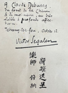 Belle réunion comprenant 17 éditions originales et une édition en partie originale, dont 9 sur grand papier. De Victor Segalen Chine. La Grande statuaire. [Paris], Flammarion, 1972. Grand in-8, broché. Édition originale, un des 55 exemplaires numérotés sur vélin alfa, seul grand papier. 16 feuillets hors texte de vues photographiques, pour une grande part des clichés pris par Victor Segalen en Chine. Texte établi par la fille de Victor Segalen, Annie Joly-Segalen, avec postface de l'orientaliste et directeur du musée Guimet Vadime Élisséeff. — Combat pour le sol. Ottawa, Éditions de l'Université d'Ottawa, 1974. In-4, broché. Édition originale, dont il n'a pas été tiré d'exemplaires sur grand papier. 3 planches photographiques hors texte, plusieurs reproductions dans le texte. Victor Segalen laissa deux manuscrits de cette œuvre demeurée inédite de son vivant, l'un rédigé de mars à mai 1913, l'autre en juillet et août 1918 – c'est cette seconde version qui est ici publiée. Selon Henri Bouillier, Le Combat pour le sol est un contre-projet à la pièce de Paul Claudel Le Repos du septième jour, et, selon Eugène Roberto, c'est l'illustration narrative par Victor Segalen de ses propres conceptions sur l'exotisme telles qu'il les a exprimées dans ses Notes sur l'exotisme. — Dossier pour une fondation sinologique. Mortemart (Haute-Vienne), Rougerie, 1982. Édition originale, un des 150 exemplaires numérotés sur bouffant afnor 7, seul grand papier. Recueil de textes écrits par Victor Segalen à partir de 1910, édités et présentés par sa fille Annie Joly-Segalen. Vignette ex-libris sur la première page blanche. — Équipée. Voyage au pays du réel. Paris, à la librairie Plon (collection « La Palatine »), 1929. In-8, broché. Édition originale, exemplaire numéroté sur alfa. Préface de son ami et compagnon de voyage Jean Lartigue. Récit littéraire de son voyage en Chine de 1914, rédigé à partir de ses « Feuilles de route ». — Essai sur l'exotisme. Une esthétique du divers (notes). [Montpellier], Éditions Fata Morgana, 1978. Édition originale, un des 30 exemplaires numérotés sur Ingres d'Arches, après 3 exemplaires hors commerce sur japon nacré, seuls sur grand papier. Ces notes, qui avaient paru en édition préoriginale dans la revue Mercure de France des 1er mars et 1er avril 1955, sont reconnues comme un texte majeur dans l'œuvre de Victor Segalen et dans l'histoire littéraire du xxe siècle sur le sujet. Trace d'ex-libris sur la première page, blanche. — Essai sur soi-même. À Fontfroide, Bibliothèque artistique & littéraire, 1986. Petit in-4, broché. Édition originale, exemplaire numéroté sur vergé teinté. Édition établie et commentée par Annie Joly-Segalen, fille de Victor Segalen qui avait écrit ces notes entre avril et décembre 1915. Envoi autographe de celle-ci : « Souvenir de son père Victor Segalen » (sur carte de visite agrafée aux deux feuillets liminaires). — Fils du Ciel. Chronique des jours souverains. [Paris], Flammarion, 1975. Grand in-8, broché. Édition originale, un des 35 exemplaires de tête numérotés sur vélin alfa, seul grand papier. Roman écrit entre 1910 et 1912, dont seules quelques pages avaient été publiées par Victor Segalen dans L'Almanach littéraire Crès en 1917. Vignette ex-libris sur la première page blanche. — Gustave Moreau, maître imagier de l'orphisme. À Fontfroide, Bibliothèque artistique & littéraire, l'an 1984. Petit in-4, broché. Édition originale, un des 30 exemplaires de tête numérotés sur vélin pur fil Johannot, seul grand papier avec 5 exemplaires de collaborateurs sur vélin à la main. Reproduction dans le texte, d'un dessin de Victor Segalen d'après une œuvre de Gustave Moreau. Texte écrit en 1908 à la suite d'une visite du musée Gustave Moreau, alors récemment ouvert, dans la perspective de concevoir des costumes et décors pour l'opéra Orphée-roi que Claude Debussy et lui avaient envisager d'écrire ensemble. Alors que Claude Debussy appréciait grandement Gustave Moreau, et alors que Victor Segalen se déclarait sensible à la poésie de son œuvre et à sa signification profonde, il livre cependant ici un véritable réquisitoire sur le plan esthétique. Couverture un peu roussie. — Imaginaires. Mortemart (Haute-Vienne), Rougerie, 1972. In-8, broché. Édition originale. Recueil de textes appartenant à un même dossier constitué par Victor Segalen, comprenant principalement trois nouvelles situées en Chine, « La Tête », « Le Siège de l'âme » et « Le Grand fleuve », parues en revues entre 1921 et 1956. Texte établi et présenté par Henry Bouillier. — Origines de la statuaire de Chine (Les). [Paris], Édition de la Différence (collection « Le Milieu »), 1976. In-8, broché. Édition originale, dont le tirage de tête sur grand papier ne comprit que 25 exemplaires. Illustrations hors texte reproduisant des dessins de Jacques Hérold. Essai poético-historique spéculatif sur la statuaire de la période archaïque dont il n'avait pu trouver d'exemple archéologique. — Peintures. Paris, [et Zurich, sur la couverture], Georges Crès et Cie (nouvelle collection « Les Proses »), 1916. In-8, broché. Édition originale, dont le tirage de tête sur grand papier ne fut tiré qu'à 18 exemplaires. — Peintures. Cinq poèmes inédits. Losne, Thierry Bouchard, 1981. In-16, en feuilles sous couverture. Édition originale, un des 12 exemplaires hors commerce numérotés sur japon Kozo Kyokushi (l'édition comporte en tout 45 exemplaires sur ce papier). Une planche photographique hors texte. Poèmes que Victor Segalen ne retint pas pour l'édition originale de 1916, ou qu'il envisagea d'ajouter à une réédition du recueil dans sa « collection coréenne » pour Georges Crès. — Odes suivies de Thibet. [Paris], Mercure de France, 1963. In-8 carré, broché. Édition en partie originale, exemplaire hors justifi