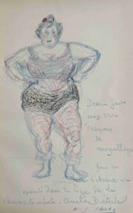 Enrichi d'un « dessin fait aux trois "crayons de maquillage" », exécuté depuis la loge d'Amélie Dieserle et signé par l'illustrateur.