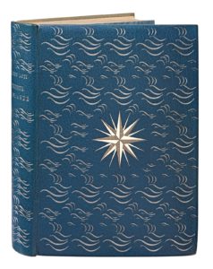 Paris, Aux Dépens d'un Amateur, [Ch. Miguet 1934]. Grand in-4, maroquin bleu canard, vaguelettes poussées au palladium, sur les plats et le dos lisse, roses des vents mosaïquées au centre en maroquin crème et gris, doublure bord à bord de maroquin gris, gardes de moire bleue, tranches dorées, couverture et dos, chemise et étui (Semet & Plumelle).