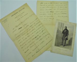 16 - DUPONT DE L’EURE, Président du Gouvernement Provisoire de Février 1848. Manuscrit autographe de son discours à la Colonne Vendôme du 4 mars 1848. Jacques-Charles Dupont de l’Eure (1767-1855) est une figure emblématique républicaine. Les émeutes des 23 et 24 février 1848 qui renversèrent Louis-Philippe firent 15 victimes. Elles furent ensevelies dans une nécropole située sous la Colonne de Juillet. Dupont de l’Eure prononça devant les 15 cercueils un discours. Le présent manuscrit en est le brouillon de sa main, à l’en-tête du Gouvernement Provisoire, avec ratures et corrections, 2 p grand in-4. Joint : gravure d’époque