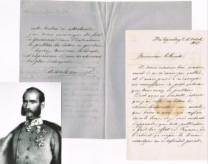 19 - Maison MONTBATTEN. Prince Alexandre de HESSE-DARMSTADT (1823-1888), Il renonça à ses titres pour épouser la femme de sa vie, Julia von Hauke, qui fut titrée Princesse de Battenberg, le couple fonda la Maison de Battenberg, qui sous la protection de la Reine Victoria, fit souche au Royaume-Uni, anglicisant leur nom, ils se firent appeler Montbatten. Ensemble de 2 lettres autographes signées, chacune 2 p in-8, Heiligenberg, 1865, au Comte de Reiset, au sujet de lettres de la Reine Marie-Antoinette dont le Comte était le spécialiste