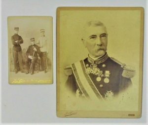 31 - MILITARIA. Général Ernest-Maximilien LARCHEY (Strasbourg 1834-1924) : sa carrière, ensemble de 16 documents militaires la plupart signés des Ministres de la Guerre (nominations, promotions) : sous-lieutenant au 46ème régiment d’Infanterie de ligne à l’armée d’Orient (1854, Maréchal Vaillant), lieutenant (1855, Maréchal Vaillant), capitaine (1859, Maréchal Vaillant), adjudant-major (1861), major (1869, Maréchal Niel), citation à l’ordre (Sébastopol 1869), lieutenant-colonel (1874, Ministre de Cissey), nomination au 1er régiment de Tirailleurs Algériens (1876), colonel (1878, Ministre Borel), membre du Comité Consultatif de l’Infanterie (1882, Général-Ministre Campenon), général de brigade à Sedan (1885, Général-Ministre Campenon), commandant des subdivisions de région d’Auxerre à Orléans (1891, Ministre de Freycinet), commandant du 19ème corps d’armée à Alger (1895, Général-Ministre Zurlinden), membre du Conseil supérieur de la Guerre en remplacement du Général Mercier (1899, Ministre de Freycinet), placé dans la section de réserve de l’Etat-Major Général de l’Armée (sept 1899, signé Galliffet). Diplôme de l’Ordre Impérial de la Légion d’Honneur décerné le 1er octobre 1856 (avec lettre de nomination signée du Maréchal Vaillant). Diplôme de la Médaille Militaire décernée le 10 mai 1852 (avec lettre de nomination en récompense de la Campagne d’Italie). Grand portrait photographique par Jean Geiser à Alger (20,5 x 27 cm). Photographie par Jean Geiser à Alger en compagnies de ses deux fils Maurice et Alfred qui seront morts pour la France en 1911 et 1914. Joint : divers documents