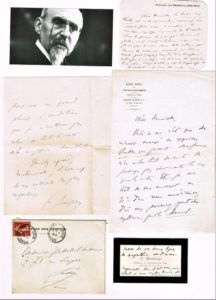 45 - NOBEL. Ferdinand BUISSON (1841-1932), philosophe et homme politique, cofondateur de la Ligue des Droits de l’Homme, Prix Nobel de la Pais en 1927. Ensemble de 2 lettres autographes signées (chacune 2 p in-8), 1 carte autographe signée (2 p in-12) avec enveloppe et une carte de visite autographe (2 p petit in-12), amicale correspondance à la femme de lettres suisse Julie de Mestral