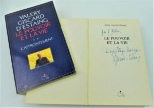 66 - Valery GISCARD D’ESTAING (1926-2020), Président de la République de 1974 à 1981. « Le Pouvoir et la Vie », 2 volumes, avec envoi autographe signé sur le premier tome, les 2 des Ed. Compagnie 12, brochés avec photos (état d’usage), 1988 (399 p) et 1991 (486 p)