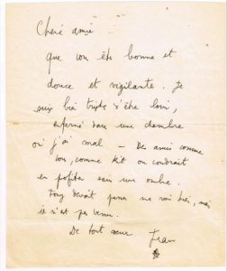 95 - Jean COCTEAU (1889-1963), poète, dessinateur, dramaturge et cinéaste. Lettre autographe signée au sujet de Christopher Wood (Kit), 1 page in-4, Années 20 : "Chère amie. Que vous êtes bonne et douce et vigilante. Je suis bien triste d'être loin, enfermé dans une chambre où j'ai mal - Des amis comme vous, comme Kit on voudrait en profiter sans une ombre. Tony devait passer me voir hier, mais il n'est pas venu. De tout cœur. Jean" [Voilà tout l'univers de Jean Cocteau des Années 20 ! Kit et Tony sont un couple d'hommes amis, homosexuels et opiomanes, Kit est le peintre anglais Christopher Wood, compagnon d'Antonio (Tony) de Gandarillas, un riche diplomate chilien. Cette lettre est vraisemblablement écrite à Jeanne Bourgoin, amie commune de Cocteau et du couple]