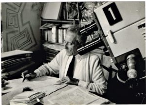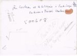 101 - Jean COCTEAU (1889-1963), poète, dessinateur, dramaturge et cinéaste. Photographie originale (18 x 13 cm) représentant Jean Cocteau travaillant devant une caméra de télévision, qu'il a légendée de sa main : "Jean Cocteau et la télévision à Santo Sospir sous le cadre de François Chalais". (En 1957, François Chalais, journaliste et chroniqueur, tourna un reportage pour la télévision à la Villa Santo Sospir des Weisweiller, à Saint-Jean-Cap-Ferrat, pour son émission "En direct de chez vous", avec Jean Cocteau en vedette)