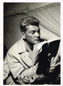 103 - Jean COCTEAU (1889-1963), poète, dessinateur, dramaturge et cinéaste. Photographie de Jean Marais par Jean-Louis Castelli avec au dos légende autographe de Jean Cocteau s’exprimant sur Jean Marais : "Jean Marais dont l’âme inflexible m’a toujours été un exemple". Cette photographie (13 x 18 cm) a servi à illustrer une publication (nombreuses indications de positionnement avec feuillet annexé de notes manuscrites). Le photographe Jean-Louis Castelli (1922-1995) a apposé son cachet au dos