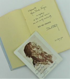114 - Paul FORT (Reims 1872-1960), poète. Livre « Ile-de-France » avec envoi autographe signé de 1934 et portrait dédicacé et signé de sa main. Ouvrage paru en 1925 aux Editions Crès, broché, 341 p in-8, numéroté sur vélin du marais. Le portrait est la couverture d’un encart de 4 p in-12 avec 3 poésies