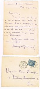 121 - Rémy de GOURMONT (1858-1915), écrivain. Lettre autographe signée, 30 juin 1897, 1 p in-8, au journaliste et bibliophile Pierre Dauze, enveloppe jointe. « Je serai très heureux de lire cet article sur Le Livre des Masques… Il m’a échappé, quoique votre revue me soit bien connue et que cela me soit un plaisir de m’y instruire, car je suis assez bibliomane »