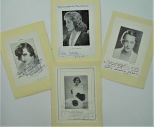 128 - [Sacha GUITRY]. Les femmes de Sacha Guitry : Charlotte LYSES, Yvonne PRINTEMPS, Jacqueline DELUBAC et Lana MARCONI. Ensemble de 4 photos de programme, chacune dédicacée et signée de leur main (chacune montée sur vergé 16 x 21,5 cm), de 1935 à 1948