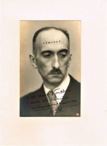 150 - François MAURIAC (1885-1970), écrivain, Prix Nobel de Littérature en 1952. Photographie originale par Manuel dédicacée et signée de sa main en 1938 (9 x 14 cm montée sur vergé 15,5 x 21,5 cm)