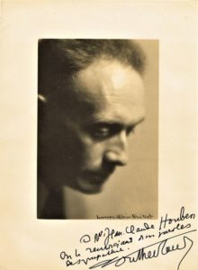 153 - Henry de MONTHERLANT (1895-1972), écrivain de l’Académie Française. Photographie originale par Laure Albin-Guillot dédicacée et signée de sa main (16,5 x 23 cm, signé dans la planche par la photographe)