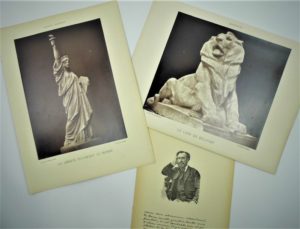 180 – [Auguste BARTHOLDI]. « La Statue et la Liberté » & « Le Lion de Belfort ». Ensemble de 2 photographies de la Galerie Contemporaine (chq 26 x 34 cm hors tout). Joint : tiré-à-part de l’encart de l’album Mariani