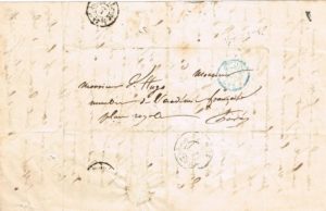 183 - Jules BRETON (1827-1906), peintre et poète. Lettre autographe signée de jeunesse à Victor Hugo, 3 pages in-8 plus page d'adresse avec affranchissement. Victor Hugo a écrit en tête son "r" pour "répondu", cachet et paraphe de Maître Gustave Gatine, notaire de la succession de Victor Hugo. Etonnante lettre du jeune Jules Breton, que l'on peut dater de 1847, année de son arrivée à Paris (pas plus tard, puisqu'après 1848, les affranchissements portent un timbre). On ne peut que s'étonner de la liberté de ton de ce jeune de 20 ans vis à vis d'un Pair de France et Académicien Français ! : « Ne trouvez-vous pas, Monsieur, que tout est bien vain et bien misérable ici-bas, et partant ! oui, tout est vain ; Dieu lui-même est vanité car enfin à quoi sert son ouvrage, à quoi servent les mondes, à quoi sert-il lui-même ? nous à quoi servons-nous ? à quoi sert l'univers ? à rien. Tout l'être n'est que néant. Oui ce qu'il y a de meilleur, de plus divin : la vie, l'amour, tout cela est vanité, Dieu est vanité. Ah ! je suis malade et je m'ennuie ; je m'ennuie de voir que tout est matière, fatalité ! hélas ! […] Ah ! si j'aimais je m'ennuierais moins. Si j'aimais ! c'est à dire si je vivais ! ah ! la vie, la vie et l'amour et l'amour ce rayon de la vie ! ô mon Dieu donnez-moi la vie ! mais bah ! ce qui doit finir si vite est-il digne d'envie... oh ! c'est égal je voudrais bien être heureux ! être heureux ! voilà qui ferait bien rire Démocrite ou Voltaire, voilà qui qui ferait fondre en larmes Héraclite ou Rousseau. Quelle étrange fou que l'homme ! ô Pascal ! ô fou laborieux ! qu'en dis-tu ? […] Pardon, Monsieur, pour ces rêveries, mais je suis si triste, je souffre tant et pas un ami pour me consoler, pauvre malade infortuné ! Aussi malgré ma fierté d'homme, ma fierté qui gémit, j'implore auprès de vous l'aumône, la charité d'un peu de consolation. Ah ! si je croyais en Jésus - le dieu-homme, le dieu fraternel, le dieu sympathique, le dieu qui a souffert, le dieu fils d'une femme, le dieu colombe pour l'esprit, agneau pour le cœur, si j'avais le bonheur de croire en lui, je n'irais pas vous implorer, Vous dont l'orgueil me repoussera peut-être. Pourtant j'espère que vous daignerez me recevoir, car je suis un voyageur malade et sérieux qui a besoin d'espérance, et, qui sait, vous la ferez peut-être descendre en mon cœur - ah ! le malheureux s'attache à toute branche de salut »