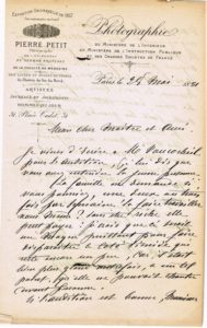 228 - PHOTOGRAPHIE. Pierre PETIT (1831-1909), photographe. Lettre autographe signée, 28 mai 1881