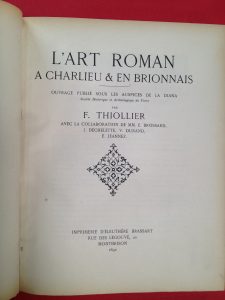 (CHARLIEU / BRIONNAIS). THIOLLIER (Félix), DURAND (Vincent), BROSSARD (Etienne), JEANNEZ (Edouard), DECHELETTE (Joseph). L’art roman à Charlieu et en Brionnais. Imprimerie Brassart, 1892, in-4 relié demi vélin ivoire, dos lisse, pièce de titre...