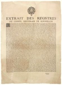 ROUSSILLON. 1704. “Extrait des Registres du CONSEIL SOUVERAIN du ROUSSILLON.” (En-tête, …