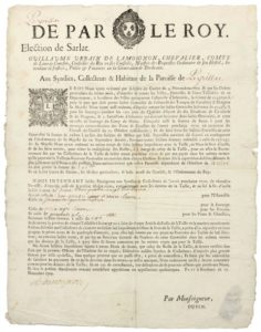 (DORDOGNE) 1709 - “DE PAR LE ROY, Élection de SARLAT.” Ordonnance de Guillaume Urbain de …