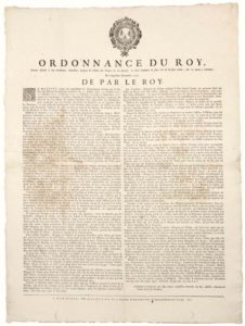 PROVENCE. 1719. FAUX SEL & FAUX TABAC de CONTREBANDE. « Ordonnance du Roy portant défenses à tous Gendarmes, Cavaliers, Dragons & Soldats des Troupes de Sa Majesté, de faire Commerce de Faux Sel & de Faux tabac, sur les peines y contenues. » (condamné aux Galères, etc.) – Fait à PARIS le 20 Décembre 1719 – Impr. à MARSEILLE (13), chez Jean-Baptiste Boy, Imprimeur du Roy et de la ville, & Marchand Libraire près la Loge. 1722. Vignette Royale et lettrine. Placard (57 x 43) État B.