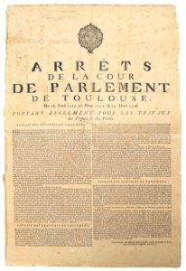 TOULOUSE (31). 1726. « Arrêt de la Cour de Parlement de Toulouse, des 16 Avril 1723. 30 Mars …