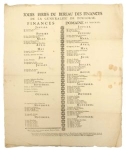 TOULOUSE (31). « JOURS FÉRIÉS du Bureau des Finances de la Généralité de TOULOUSE. Finance. …