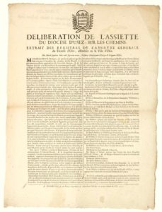 GARD. 1730. “Délibération de l’Assiette du DIOCÈSE D’UZÈS, sur les CHEMINS. Extrait des …