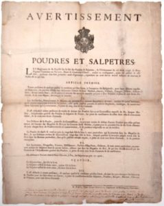 (PAU 64). 1747. « POUDRES & SALPÊTRES » - Avertissement des règlements de sa Majesté sur le fait des Poudres & Salpêtres, & l’Ordonnance du 26 avril 1746, & l’Ordonnance de Mgr l’Intendant en NAVARRE, BÉARN et Généralité d’AUCH - Impr. à PAU, chez Jean Dupoux, Imprimeur de Monseigneur l’intendant – Souscription manus. 1747 - (traces de montages au verso). Placard (45 x 36) État B.