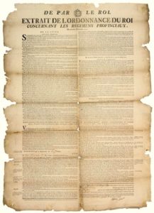 ARDÈCHE. 1775. LANGUEDOC. RÉGIMENTS PROVINCIAUX. Extrait de l’Ordonnance du Roi LOUIS XVI, concernant les Régiments provinciaux. » (Levée des Soldats du Diocèse de VIVIERS. Tirage au sort des Garçons la Communauté de CHEYLAS). du 1er Décembre 1774 – Fait à JOYEUSE (07) le 10 Mars 1775. (de la Levée, des Crimes & délits militaires, & Punitions contre les Déserteurs ; Privilèges & avantages aux Soldats-Provinciaux.) Suivi de l’Ordonnance de DE GUIGNARD DE SAINT PRIEST, Chevalier, Seigneur d’Alivet, Renage, … Intendant en la Province du Languedoc. Impr. à MONTPELLIER (34), chez Augustin- François Rochard, seul Imprimeur du roi, Place du Petit-Scel. 1775. Placard (80 x 58) État C (trous et usures d’affichage)
