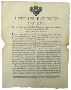 PROVENCE. 1790. CITOYEN ACTIF - « Lettres patentes du Roi, sur un Décret de l’Assemblée Nationale, relatif aux conditions exigées pour être Citoyen Actif » Données à Paris le 16 Janvier 1790 – La fixation du prix des journées de travail, pour être Citoyen Actif, ne pourra excéder la somme de vingt sous… Signé LOUIS XVI & de SAINT-PRIEST – Vignette. Impr. à AIX (13) chez David. Placard (46 x 35) Etat B