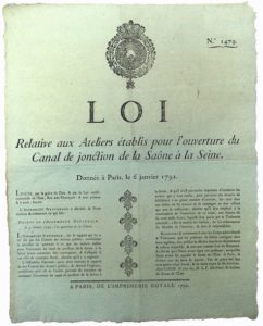 CANAL de la SAÔNE à la SEINE. 1792. “Loi relative aux ATELIERS établis pour l’ouverture du …