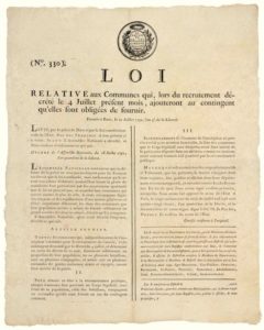 CORRÈZE. 1792. « L’HONNEUR DE DÉFENDRE LA PATRIE ». PARIS le 21 Juillet 1792, l’an 4 de la Liberté. « LOI relative aux Communes qui, lors du recrutement décrété le 4 Juillet présent mois, ajouteront au Contingent qu’elles sont obligées de fournir. ». « L’Assemblée Nationale est convaincue que la Défense de la Patrie ne sera pas seulement pour les Français un devoir que la Loi commande, MAIS UN HONNEUR qu’ils seront jaloux d’obtenir ; voulant leur laisser la gloire de manifester leur patriotisme par des mouvements spontanés que la loi ne prescrit pas… décrète qu’il y a urgence… » signée (impr.) LOUIS XVI Roi des Français. Lue au Département de la Corrèze. TULLE 9 Août 1792 – Vignette « La Nation, et la Loi, Liberté Égalité ». Placard (41 x 33) État B