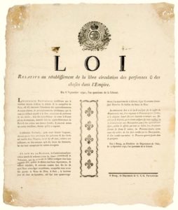 DANTON. 1792. AIN. « LOI relative au rétablissement de la LIBRE CIRCULATION des personnes & des …
