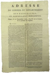 ALPES DE HAUTE PROVENCE. 1792. « Adresse du Conseil du Département des BASSES-ALPES, en …