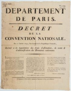 DÉPARTEMENT DE PARIS. 1793. VENTE DES BIENS NATIONAUX. « Décret de la CONVENTION NATIONALE, du …