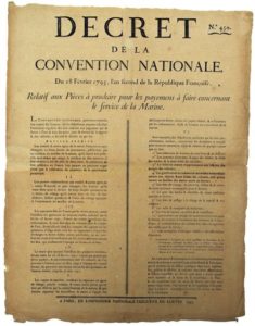 PARIS. 1793. SERVICE DE LA MARINE. Décret du 18 février 1793, relatif aux pièces à produire …