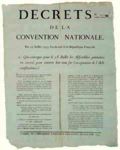 PARIS 1793. ACCEPTATION DE L’ACTE CONSTITUTIONNEL : Décret de la Convention Nationale, du 19 …