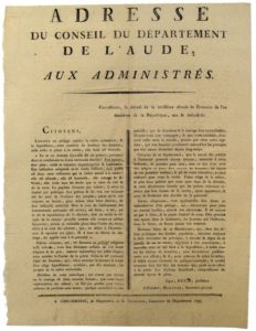 AUDE. 1793. “ADRESSE du Conseil du Département de l’AUDE, aux Administrés. CARCASSONNE le …